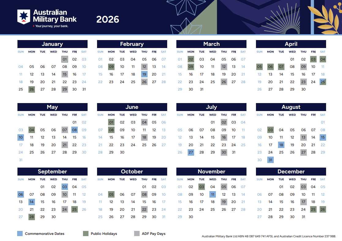 To view Australian Military Bank's terms and conditions visit: Disclosure Documents | Australian Military Bank